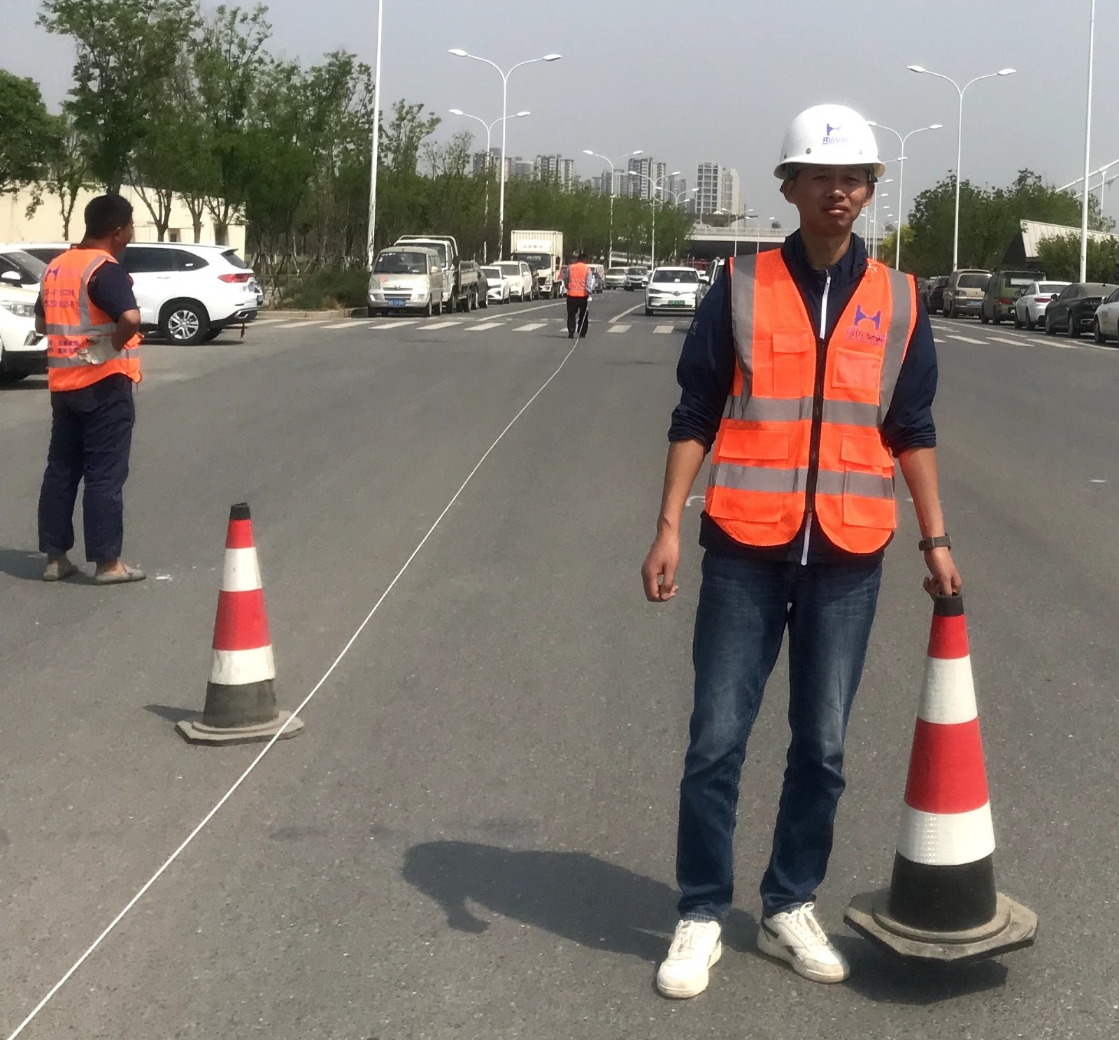 西安灞河西路道改施工劃線